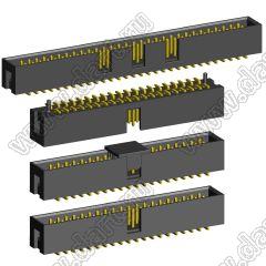 3) Количество контактов (6...64): 06: 2x3 08: 2x4 10: 2x5 12: 2x6 14: 2x7 16: 2x8 20: 2x10 24: 2x12 26: 2x13 30: 2x15 34: 2x17 40: 2x20 50: 2x25 60: 2x30 64: 2x32