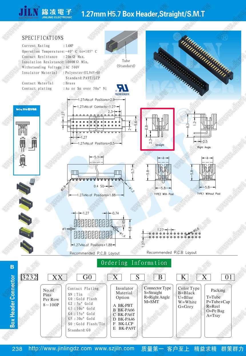 Каталог > Электронные компоненты, радиодетали > Разъёмы (соединители, переходники) > Разъемы IDC для плоского кабеля (шлейфа) > 1,27 x 1,27 > 2198S-xxxG-A2 (3232-xxxS-2) серия