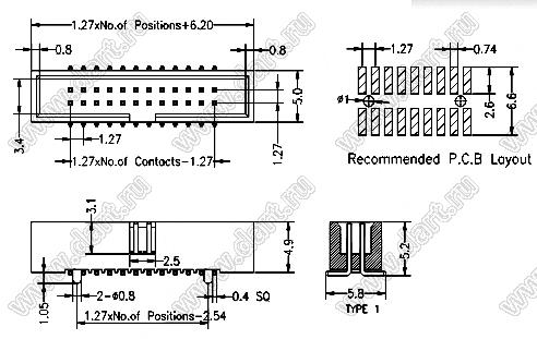 Серия двухрядных закрытых штыревых прямых вилок IDC с шагом 1,27x1,27 мм в корпусе для поверхностного (SMD) монтажа. Предназначена для совместного использования с серией 4412 (соединитель IDC1.27 для плоского шлейфа). Поставляется со склада в Москве и под заказ с фабрики. Срок производства около 2 недель, плюс срок доставки. Условия поставки уточняйте у менеджеров.