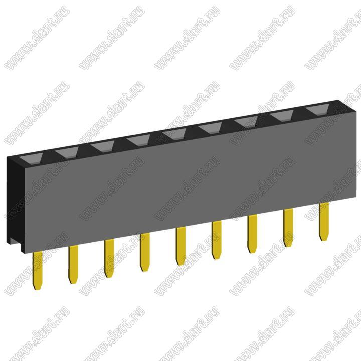 розетки однорядные прямые (гнездо) на плату для монтажа в отверстия, высота изолятора 5,7 мм; шаг 2,54 мм