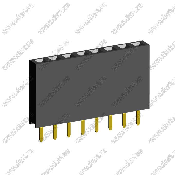 розетки однорядные прямые (гнездо) на плату для монтажа в отверстия, высота изолятора 11,0 мм; шаг 2,54 мм