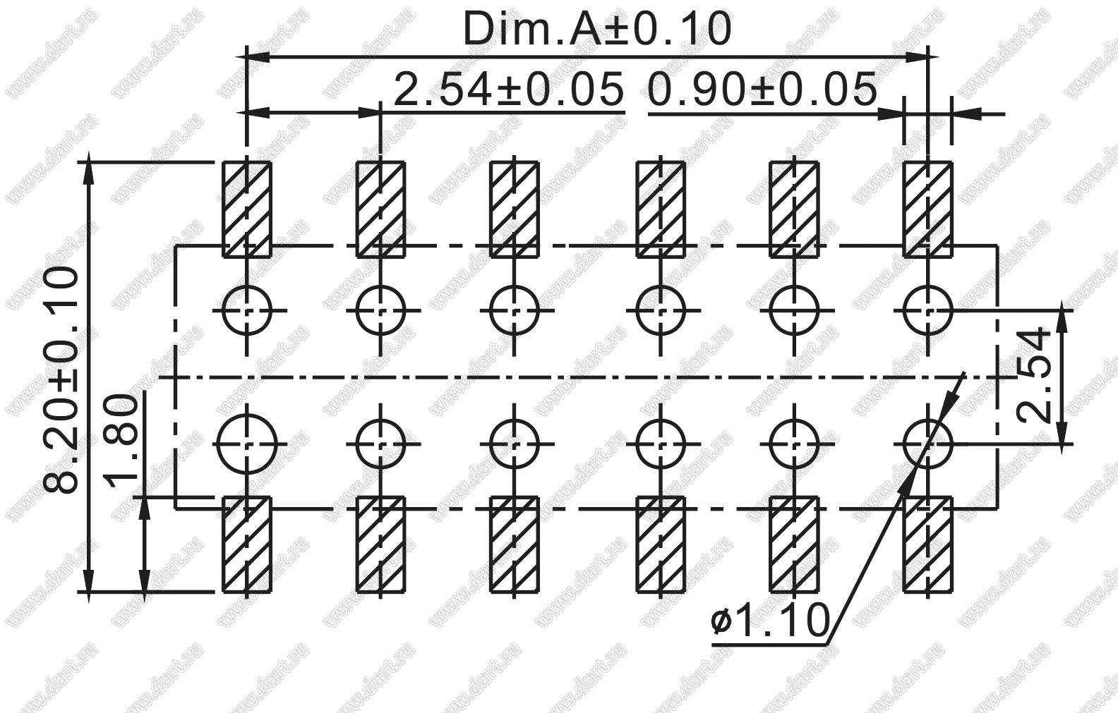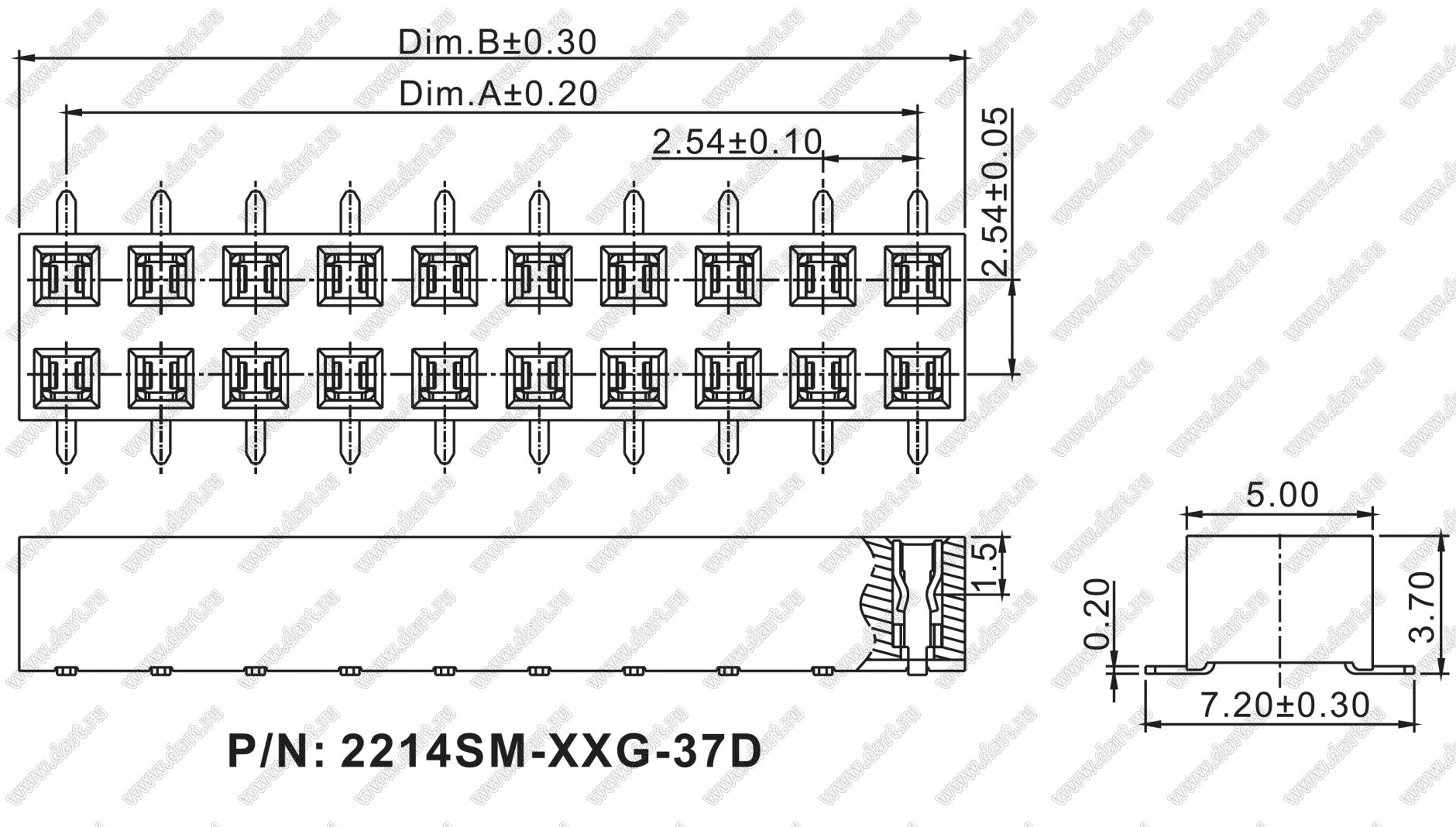 розетки двухрядные прямые (гнездо) на плату для поверхностного (SMD) монтажа, высота изолятора 3,7 мм; шаг 2,54 x 2,54 мм