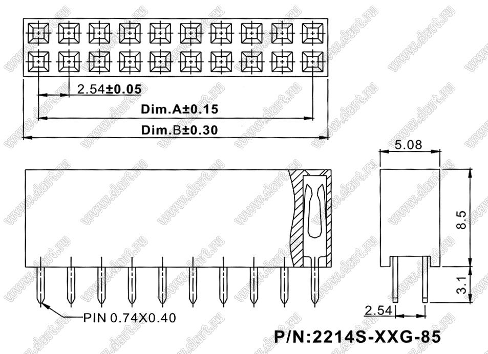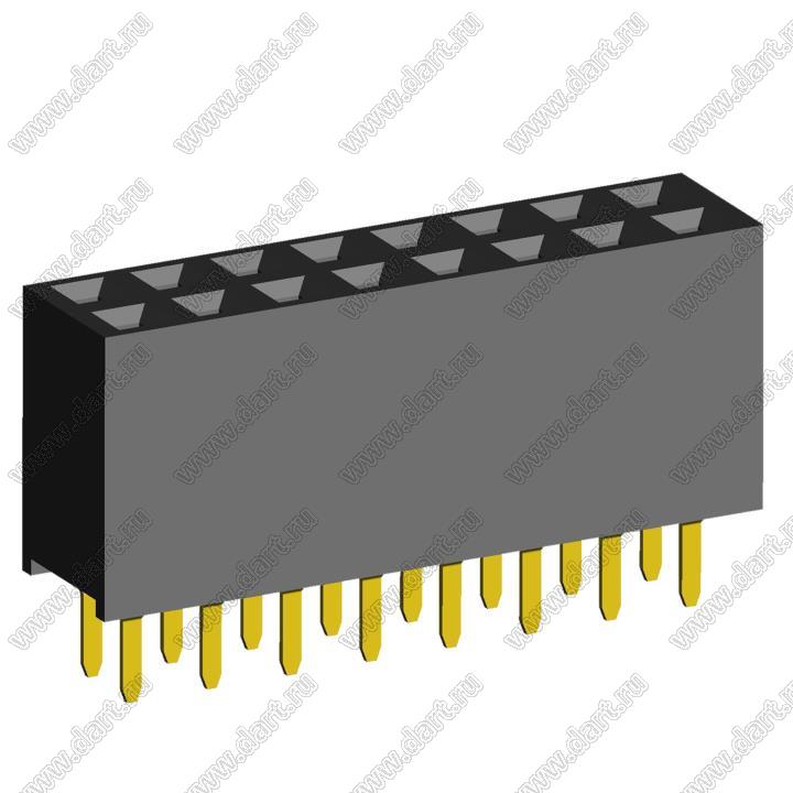 розетки двухрядные прямые (гнездо) на плату для монтажа в отверстия, высота изолятора 8,5 мм; шаг 2,54 x 2,54 мм