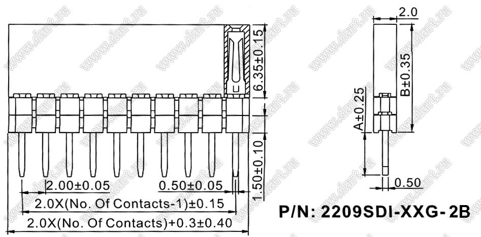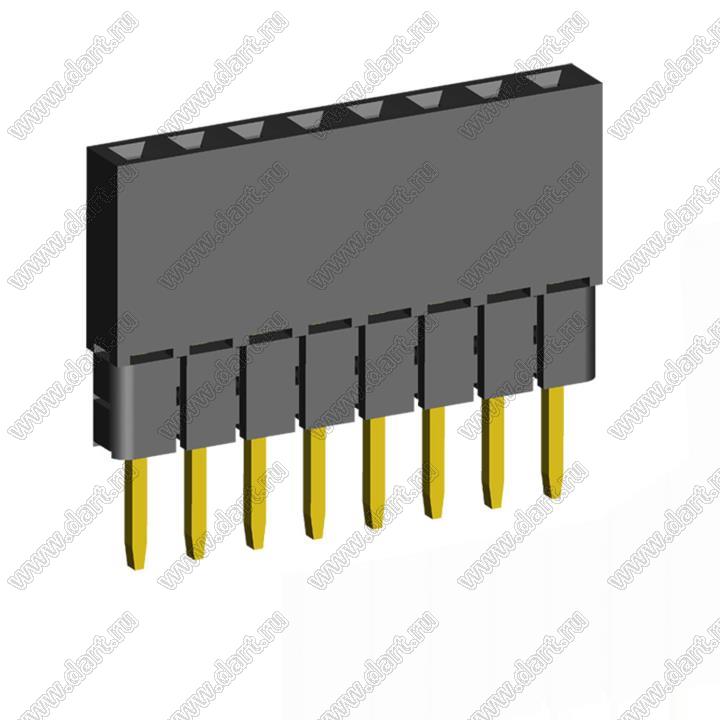 Розетки прямые однорядные с увеличенным изолятором на плату для монтажа в отверстия (шаг 2,00 мм)