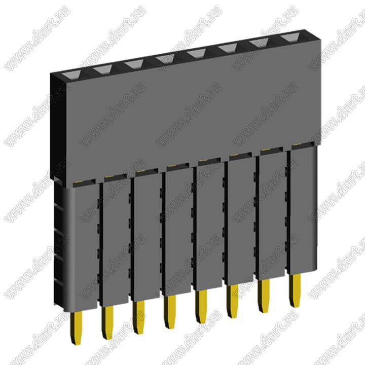 Розетки прямые однорядные с увеличенным изолятором на плату для монтажа в отверстия (шаг 2,00 мм)