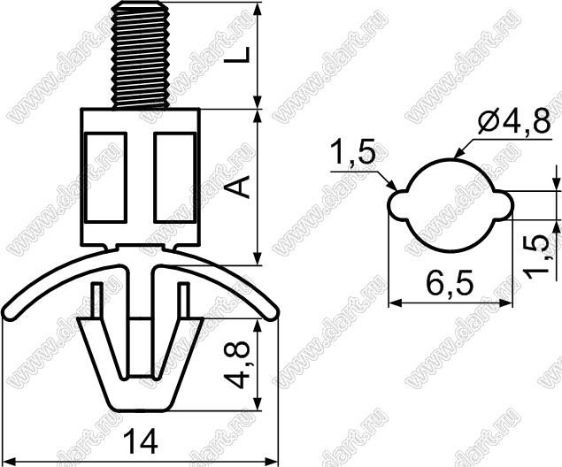 Диаметр отверстия в шасси d отв.: 4,8 мм
