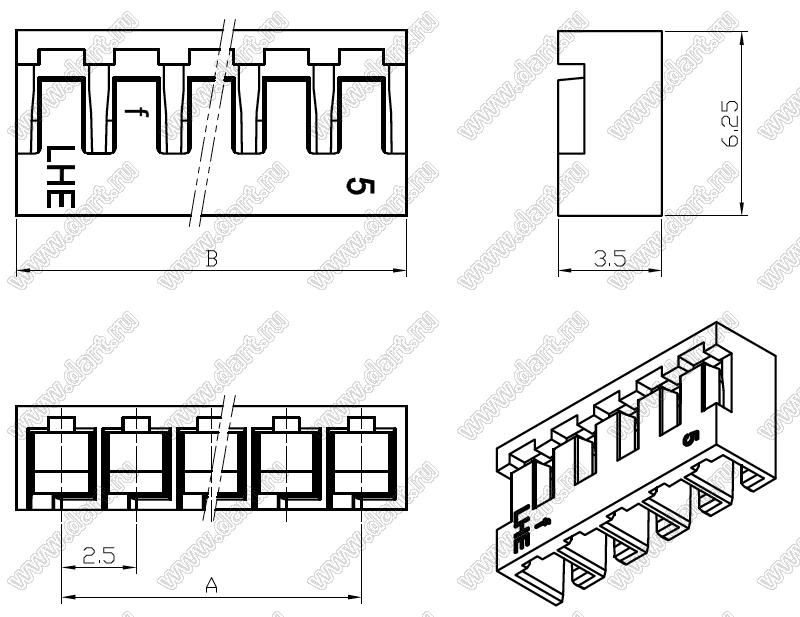 Угловые колодки на кабель, запаиваемые в плату, имеют шаг 2,5 мм. Угловые колодки на кабель, запаиваемые в плату, предназначены для неразъемного соединения нескольких проводов с платой. Применение данных колодок, в которые вставлены провода с обжатыми терминалами (контактами), позволяет ускорить монтаж изделий.