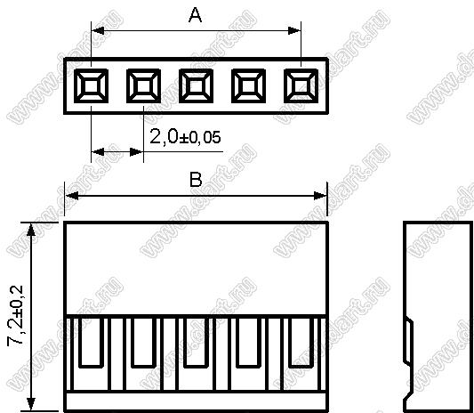 Корпуса однорядных розеток на провод, шаг контактов 2,00 мм