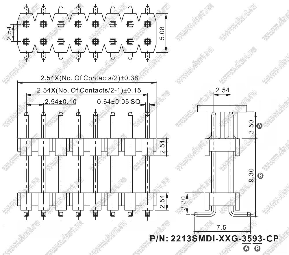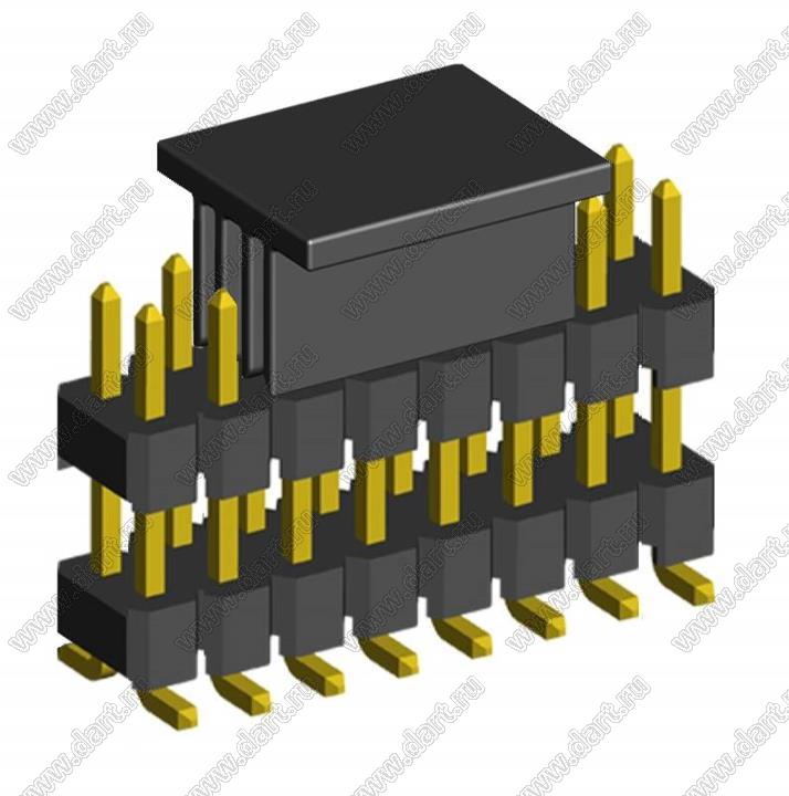 вилки открытые прямые двухрядные с двойным изолятором на плату для поверхностного (SMD) монтажа с захватом, шаг 2,54 x 2,54 мм