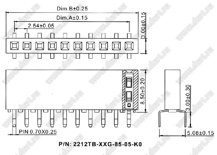 розетки однорядные прямые (гнездо) на плату для монтажа в отверстия, высота изолятора 8,5 мм; шаг 2,54 мм