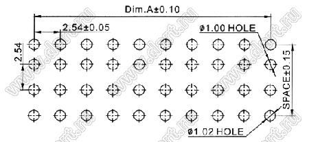 розетки двухрядные прямые на плату для монтажа в отверстия, шаг 2,54 x 2,54 мм