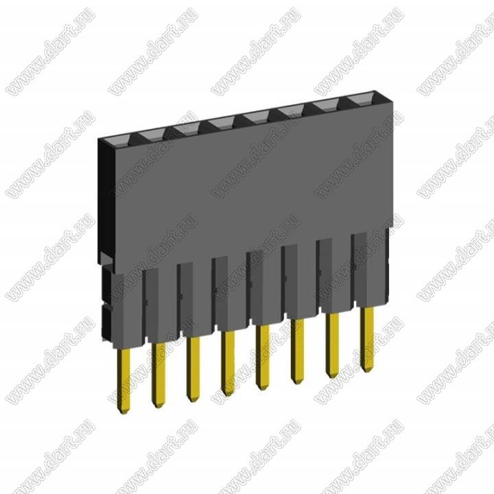 розетки однорядные с увеличенным изолятором на плату для монтажа в отверстия, шаг 2,54 мм
