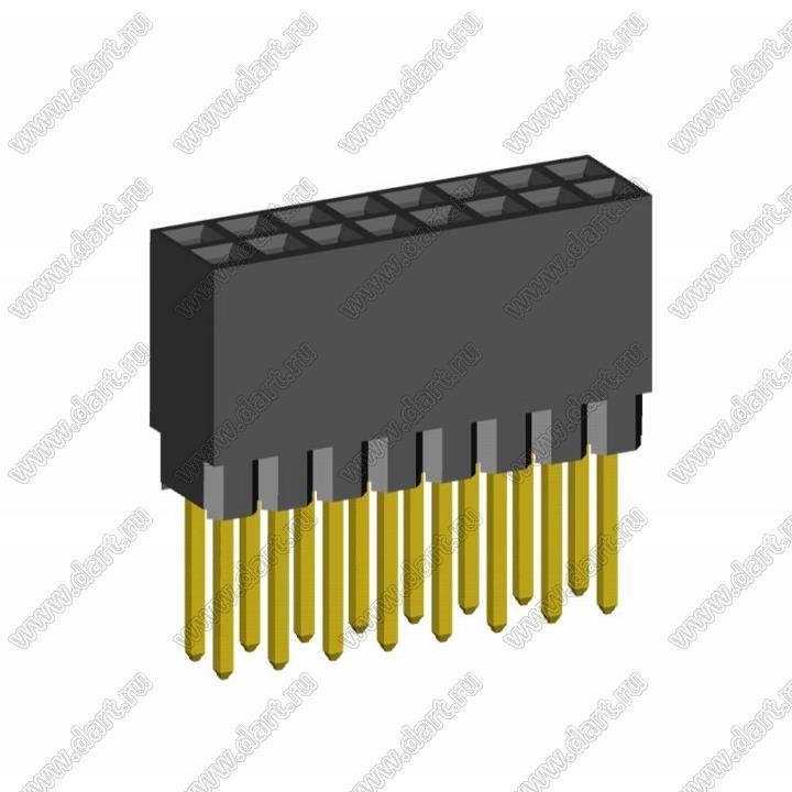 розетки двухрядные с увеличенным изолятором на плату для монтажа в отверстия, шаг 2,54 x 2,54 мм