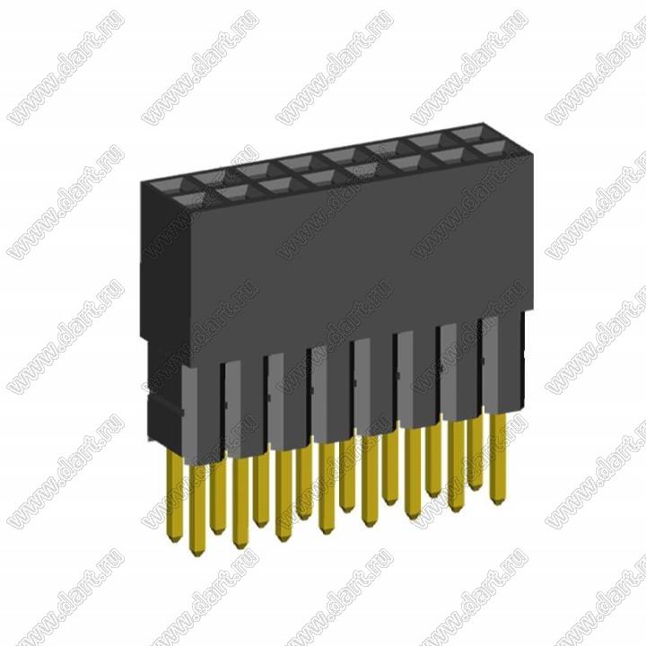 розетки двухрядные с увеличенным изолятором на плату для монтажа в отверстия, шаг 2,54 x 2,54 мм