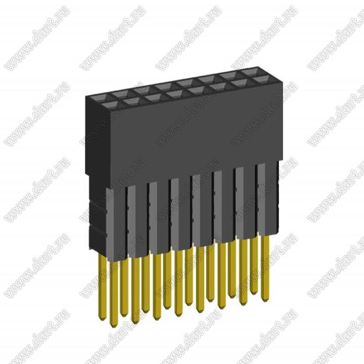 розетки двухрядные с увеличенным изолятором на плату для монтажа в отверстия, шаг 2,54 x 2,54 мм