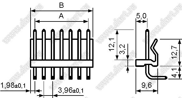 Вилки угловые на плату для выводного монтажа, шаг контактов 3,96 мм