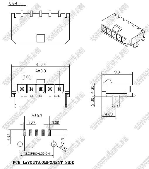 Каталог > Электронные компоненты, радиодетали > Разъёмы (соединители, переходники) > Разъемы кабель-плата > Шаг 3,0мм Micro-Fit > 3000WR-S-F-XXP (Micro-Fit 3.0™ MOLEX 043650-XX09)