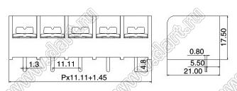 Клеммники барьерные HB66 серии, выводы прямые в плату, шаг 11.11 мм