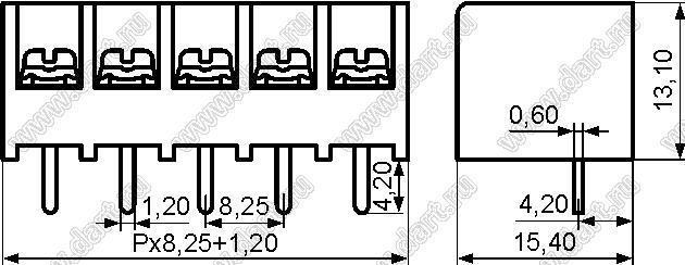 Клеммники барьерные HB825 серии, выводы прямые в плату, шаг 8.25 мм