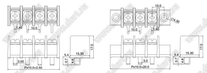 Каталог > Электронные компоненты, радиодетали > Клеммники (колодки клеммные) > Клеммники барьерные > Барьерные клеммники (шаг 10,0 мм) > KF55R (DG55R-B) серия