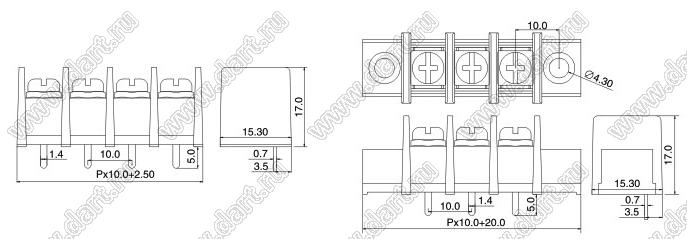 Каталог > Электронные компоненты, радиодетали > Клеммники (колодки клеммные) > Клеммники барьерные > Барьерные клеммники (шаг 10,0 мм) > KF55SM (DG55S-A) серия
