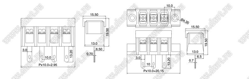 Шаг выводов шаг: 10 мм Количество контактов N: 2...24 -конт. Макс. допустимый ток I max: 30/32 А (стандарт UL/ICT) Макс. рабочее напряжение U: 300/750 В (стандарт UL/ICT) Температура рабочая Tраб.: -40...+105 °C Напряжение пробоя (диэлектрическая стойкость) U ≥: 2000 В Сортамент провода A.W.G.: 18-10 Материал винтов: M4, сталь никелировнная Материал контактов: латунь, луженая Материал корпуса: PA66, UL94V-0 Сечение провода: 4 кв.мм Усилие затяжки макс.: 10 кг/см нм |