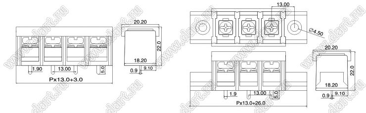 Каталог > Электронные компоненты, радиодетали > Клеммники (колодки клеммные) > Клеммники барьерные > Барьерные клеммники (шаг 13,0 мм) > KF78C (DG78C-B) серия