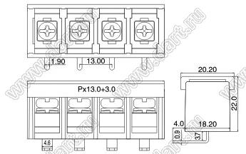 Каталог > Электронные компоненты, радиодетали > Клеммники (колодки клеммные) > Клеммники барьерные > Барьерные клеммники (шаг 13,0 мм) > KF78RM (DG78R-A) серия