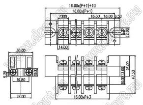 Клеммники барьерные KF47-16.0 серии, двухсторонние зажимы, шаг 16.00 мм, корпус с монтажными ушами
