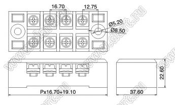 Клеммники барьерные TB45 серии, шаг 16.80 мм, корпус двухрядный с монтажными ушами