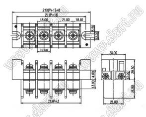 Клеммники барьерные KF57-21.0 серии, двухсторонние зажимы, шаг 21.00 мм, корпус с монтажными ушами