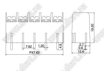 Клеммники барьерные KF7.62H серии, выводы прямые в плату, шаг 7.62 мм, корпус высотой 19.2 мм