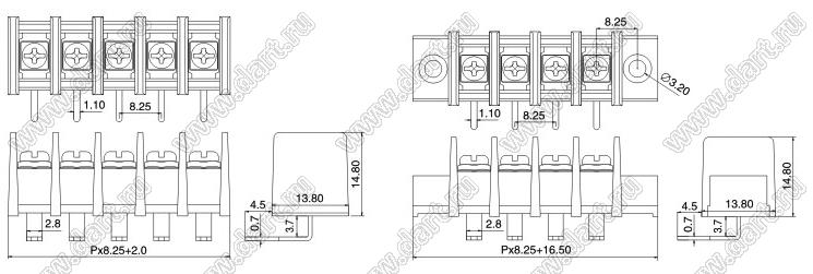 Каталог > Электронные компоненты, радиодетали > Клеммники (колодки клеммные) > Клеммники барьерные > Барьерные клеммники (шаг 8,25 мм) > KF35R (DG35R-B) серия