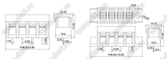 Каталог > Электронные компоненты, радиодетали > Клеммники (колодки клеммные) > Клеммники барьерные > Барьерные клеммники (шаг 8,25 мм) > KF38C (DG38C-B) серия