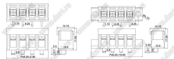 Каталог > Электронные компоненты, радиодетали > Клеммники (колодки клеммные) > Клеммники барьерные > Барьерные клеммники (шаг 8,25 мм) > KF38R (DG38R-B) серия