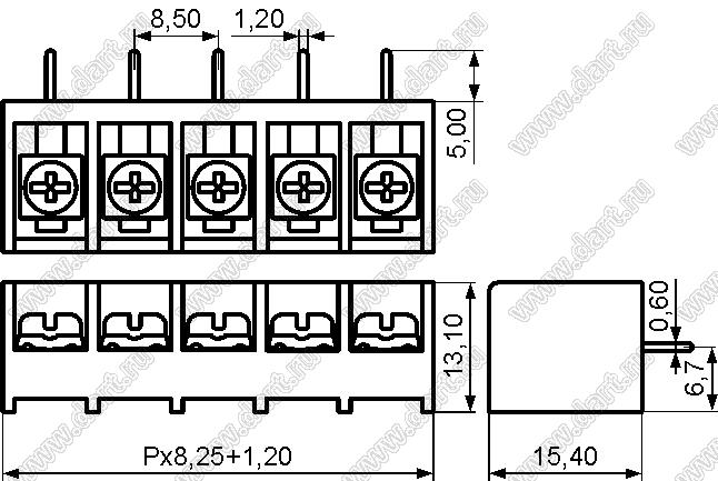 Клеммники барьерные HB8500B серии, выводы угловые в плату, шаг 8.50 мм