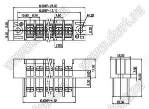 Клеммники барьерные KF17S-8.5 серии, двухсторонние зажимы, шаг 8.50 мм, корпус с монтажными ушами, с крышкой на защелках