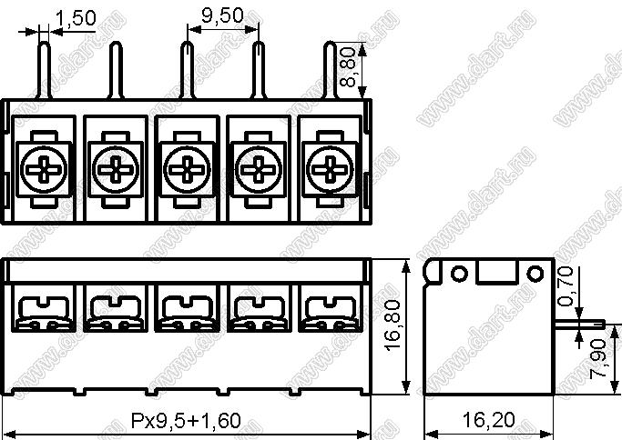 Каталог > Электронные компоненты, радиодетали > Клеммники (колодки клеммные) > Клеммники барьерные > Барьерные клеммники (шаг 9,50 мм) > HB9500SSB-9.5 серия