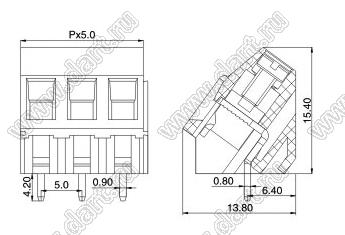 Каталог > Электронные компоненты, радиодетали > Клеммники (колодки клеммные) > Клеммники винтовые для монтажа в отверстия печатных плат > Винтовые клеммники (шаг 5,0 мм) > KF103-5.0 (DG103-5.0) серия