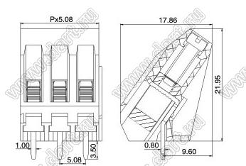 Клеммники винтовые, однорядные, с входами проводов под углом 45 град, шаг 5,08 мм