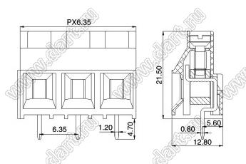 Каталог > Электронные компоненты, радиодетали > Клеммники (колодки клеммные) > Клеммники винтовые для монтажа в отверстия печатных плат > Винтовые клеммники (шаг 6,35 мм) > KF635-6.35 (DG635-6.35) серия