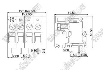 Каталог > Электронные компоненты, радиодетали > Клеммники (колодки клеммные) > Клеммники винтовые для монтажа в отверстия печатных плат > Винтовые клеммники (шаг 7,5 мм) > KF105R-7.5 (DG105R-7.5) серия