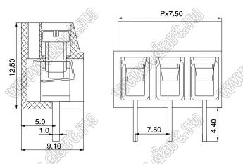 Клеммники винтовые KF375-7.5 серии, однорядные, прямые, шаг 7,5 мм, предназначены для применения внутри электронной аппаратуры. Стандартные клеммники с винтовыми зажимами KF375-7.5 серии, с шагом 7,5 мм, паяют в отверстия печатной платы. Конструкция винтовых клеммников с шагом 7,5 мм соответствует международным стандартам IEC60998, UL1059, UL486E, CSA C22.2 No.158. Условия поставки винтовых клеммников KF375-7.5 серии уточняйте у наших менеджеров.