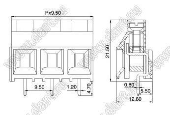Каталог > Электронные компоненты, радиодетали > Клеммники (колодки клеммные) > Клеммники винтовые для монтажа в отверстия печатных плат > Винтовые клеммники (шаг 9,50 мм) > KF950-9.5 (DG950-9.5) серия