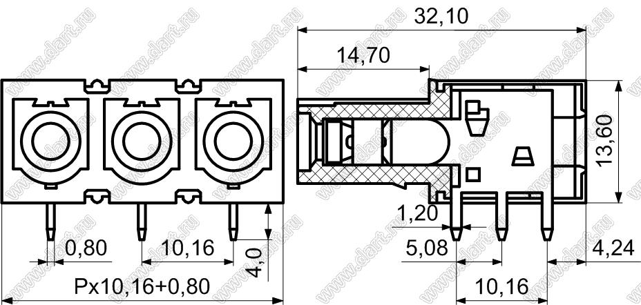 розетки на плату угловые, шаг 10,16 мм