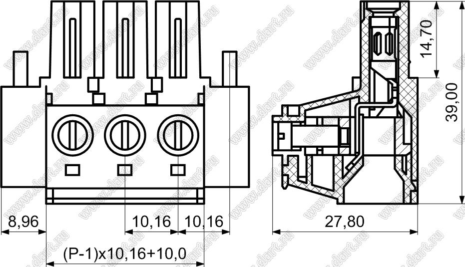 розетки на провод с монтажными ушами, шаг 10,16 мм