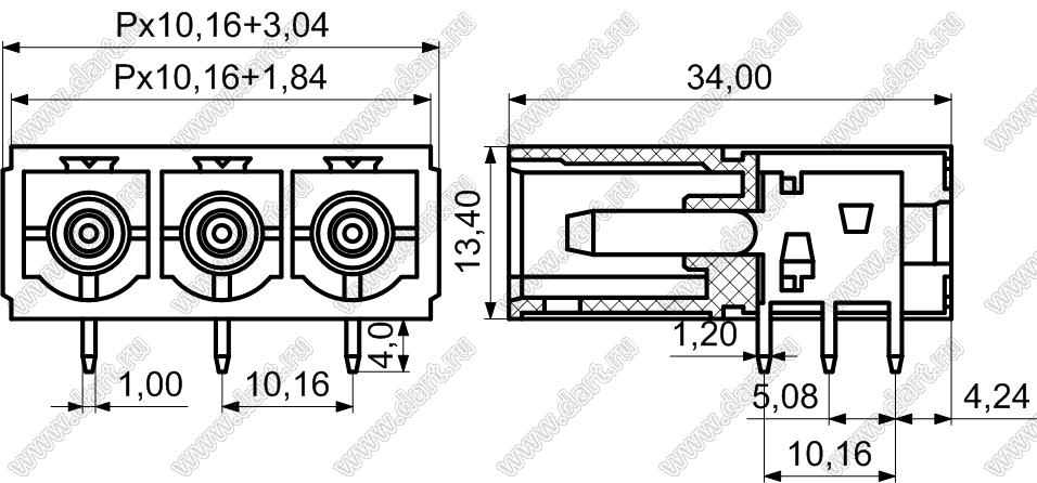 Каталог > Электронные компоненты, радиодетали > Клеммники (колодки клеммные) > Клеммники разъемные > Разъемные клеммники шаг 10,16 мм > KF2EDGSRA-10.16 серия