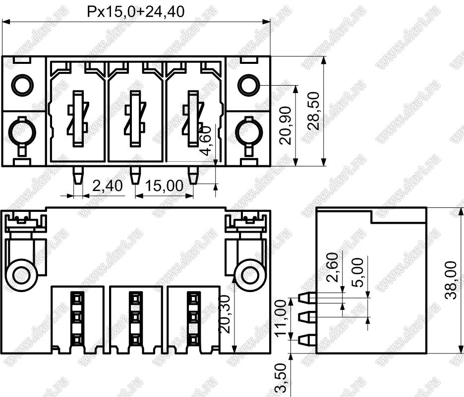 Каталог > Электронные компоненты, радиодетали > Клеммники (колодки клеммные) > Клеммники разъемные > Разъемные клеммники шаг 15,0 мм > KF2EDGSRM-15.0 серия