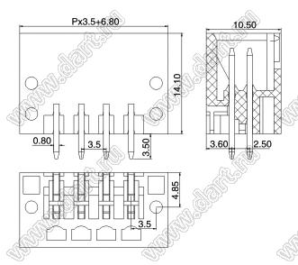 вилки прямые на плату двухрядные с отверстиями под крепежные винты и закладные гайки, шаг 3,5мм