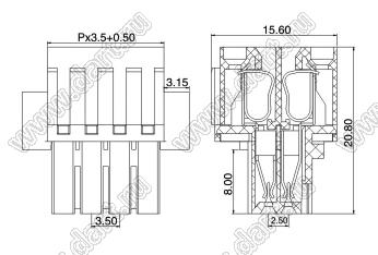 вилки на провод двухрядные с прямыми входами проводов под винтовые зажимы и с монтажными ушами, шаг 3,5 мм